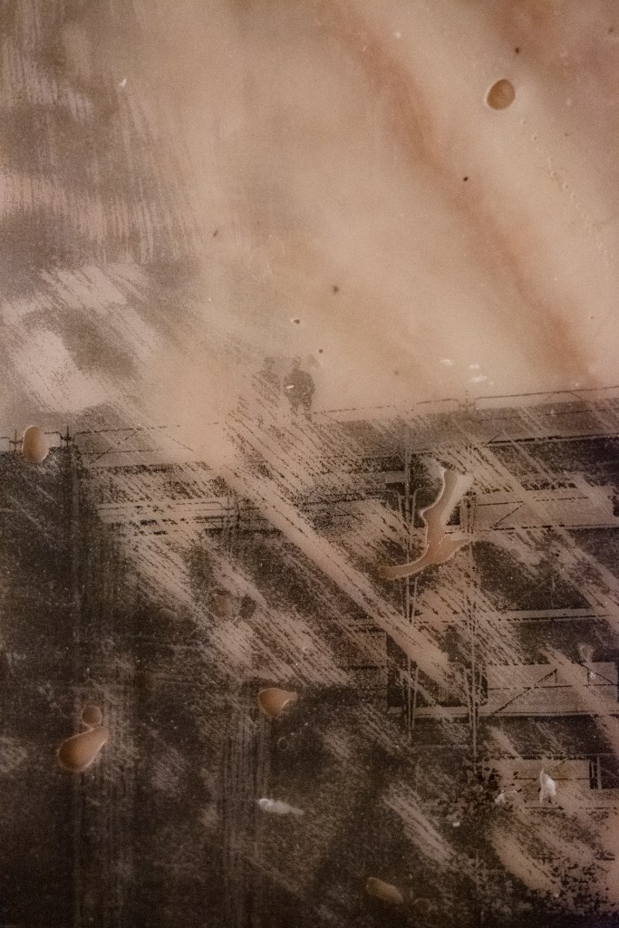 Ces fragments dévoilés donnent vie à la stasis. La série «Troubles » est habitée par la question de l’effacement et de la perte nées dans l’imprévu d’un geste technique de l’artiste. De ce fait, l’ensemble photographique relève d’une esthétique du dévoilement, exposant les vestiges de stasis comme victime de l’inconstance du processus mémoriel. Impossible de ne pas déceler la pensée rhizomatique qui exsude de ce paradigme de la stasis tel qu’imaginé par Lilie Pinot. En effet, il aurait été attendu d’user des processus de mémorisation traumatique, l’artiste leur préférant une mémorisation par objectalisation du trouble afin de pouvoir s’en saisir, l’analyser et en garder une trace. (…)